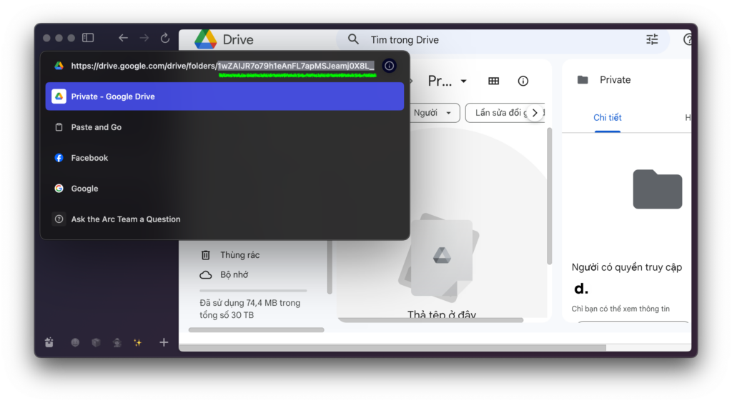 Trong đó Private là thư mục root ở tài khoản Google Drive