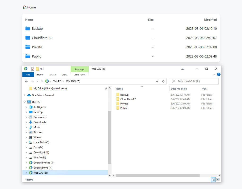 Lúc này trên Windows của bạn đã có ổ đĩa WebDAV với đầy đủ cấu trúc thư mục y chang như trên web