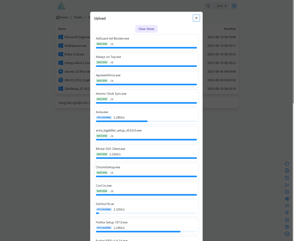 Alist giúp chúng ta tạo 1 trang index, download hỗ trợ rất nhiều dịch vụ storage, khá tương tự Google Drive Index, nhưng các tùy biến, phân quyền mạnh mẽ hơn, một trong các tính năng mà mình rất ấn tượng là dùng Cloudflare Workers để làm proxy khi download, nhờ thế, kể cả có rất nhiều người cùng download, nó vẫn có thể đáp ứng được, giải pháp đơn giản mà cực kì hiệu quả.