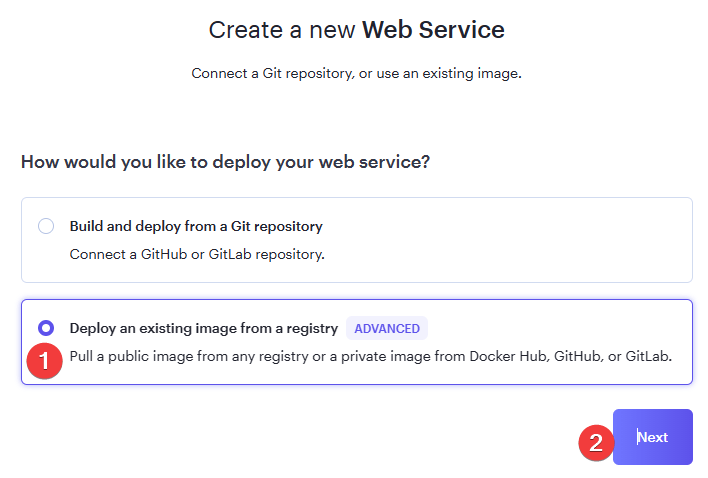 - Chọn Deploy an existing image from a registry