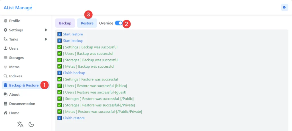 - Chú ý xem kĩ lại phần phân quyền các tài khoản, vì backup qua giao diện web thi thoảng nó có lỗi, không ghi đè lên được