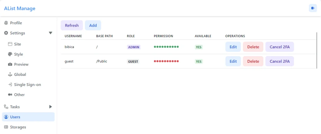 Nếu đây là lần đầu tiên bạn cài đặt Alist, thì login tài khoản admin với thông số ở trên, sau đó cấu hình như bình thường, có thể tham khảo cách cấu hình các storage trong bài viết gốc về AList