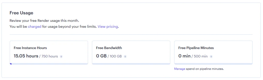 - Mặc định nếu sử dụng Render Web Services miễn phí, sau 15 phút không có truy cập, Render sẽ tự ngắt kết nối, khi có truy cập tiếp theo thì mới chạy lại