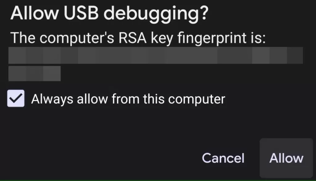 - Bước 5: Kết nối điện thoại với máy tính bằng cáp USB-C có hỗ trợ truyền tải dữ liệu (nhấn Cho phép gỡ lỗi USB khi có thông báo).