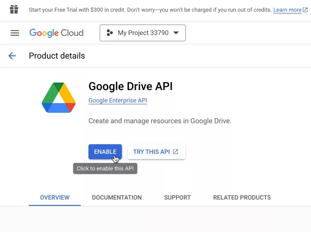 Truy cập: https://console.cloud.google.com/apis/library/drive.googleapis.com
