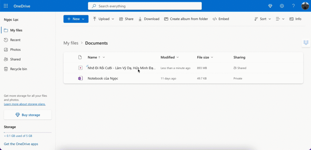 OneDrive cá nhân, trên giao diện web bấm chuột phải vào file chọn Embed như hình: