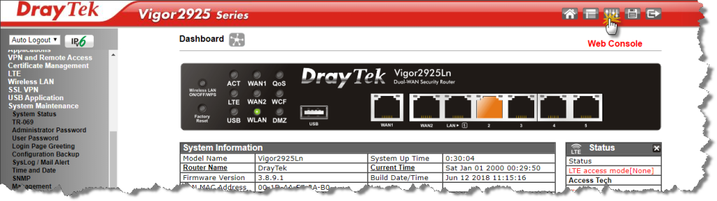 Bước 4: Trong giao diện web, nhấn vào biểu tượng WEB CONSOLE ở góc trên bên phải