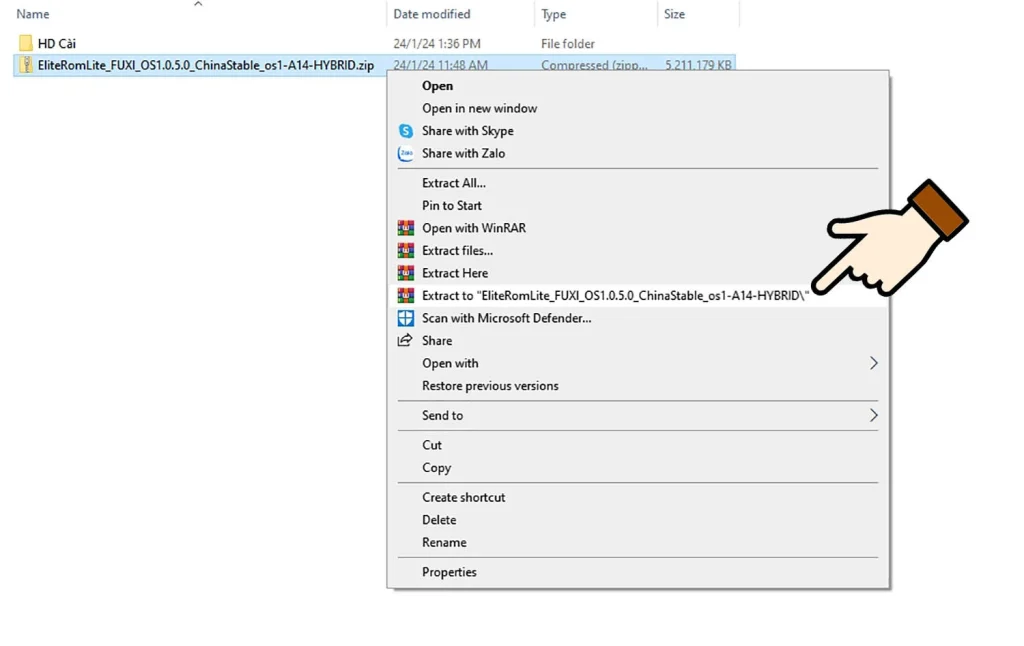 Sau đó bạn sẽ có một thư mục tên EliteRomLite_FUXI_OS1.0.7.0_ChinaStable_os1-A14-HYBRID.