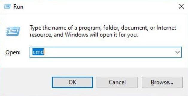 Bước 2: Trên máy tính bạn nhấn tổ hợp phím Window + R sau đó gõ “cmd“, rồi nhấn Enter để vào bảng cmd.