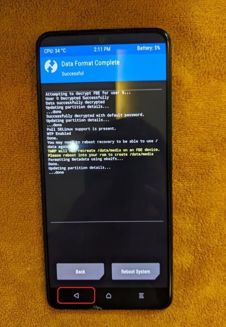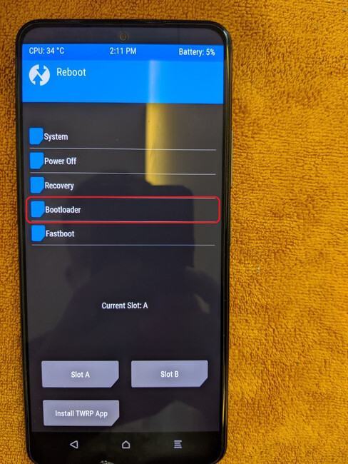Bước 5: Sau khi format data xong nhấn quay lại đến màn hình chính TWRP, sau đó chọn Reboot > Bootloader.