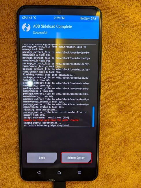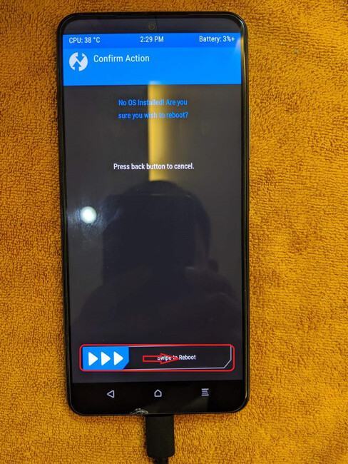 Bước 9: Quá trình nạp rom là hoàn toàn tự động, bạn chỉ việc đợi khi nạp được 47% sẽ ngừng, trên điện thoại bạn chọn Reboot System rồi kéo thanh trượt để xác nhận.