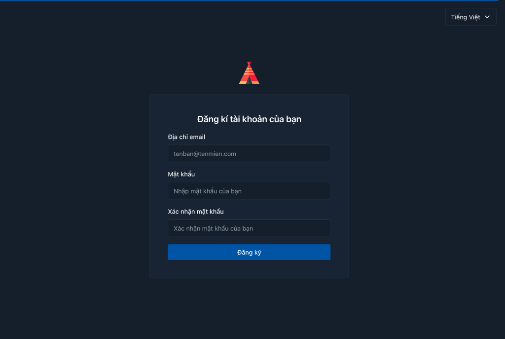 Ở lần truy cập đầu tiên Tipi sẽ yêu cầu bạn tạo tài khoản admin