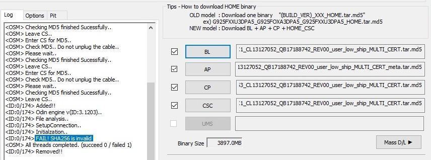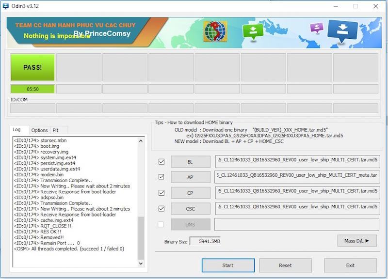 • Tải và giải file Odin3_v3.13.1_3B_PatcheD.zip (ODIN-modified.zip – chỉ hỗ trợ đến Android 7) (sử dụng Odin này để không bị lỗi FAIL! SHA256 is invalid)